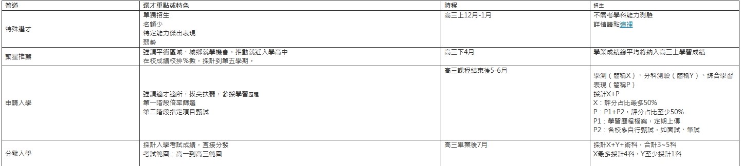 維持多元化學生,避免同質性太高,共有四個多元入學管道,多數學生仍以申請入學與分發入學為主