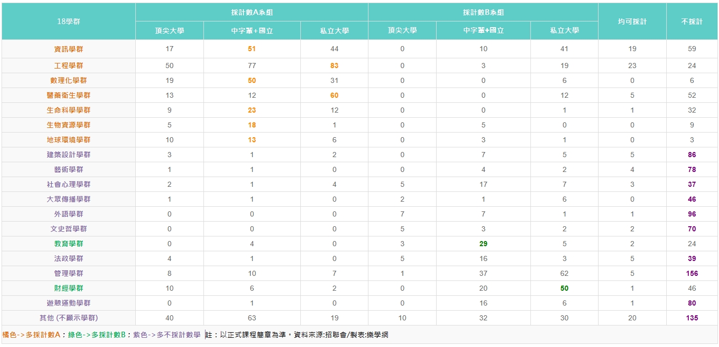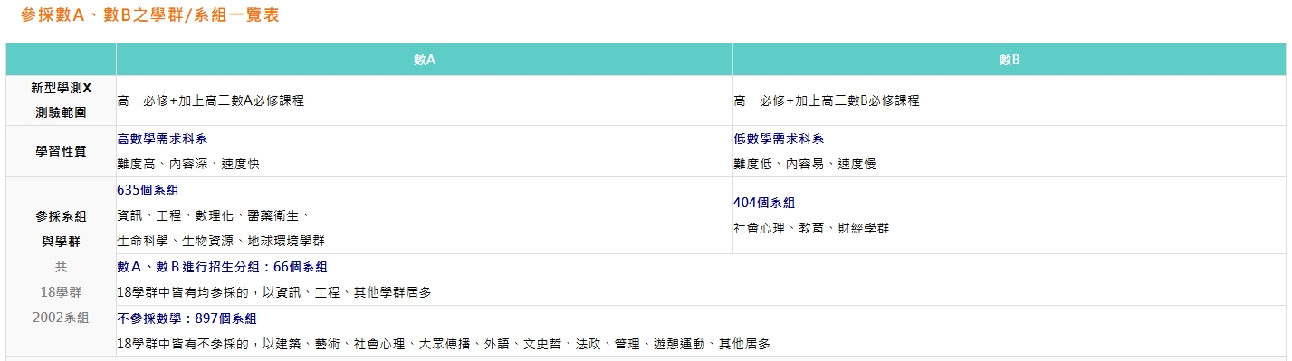 最新消息 - 參採數A、數B之學群/系組一覽表